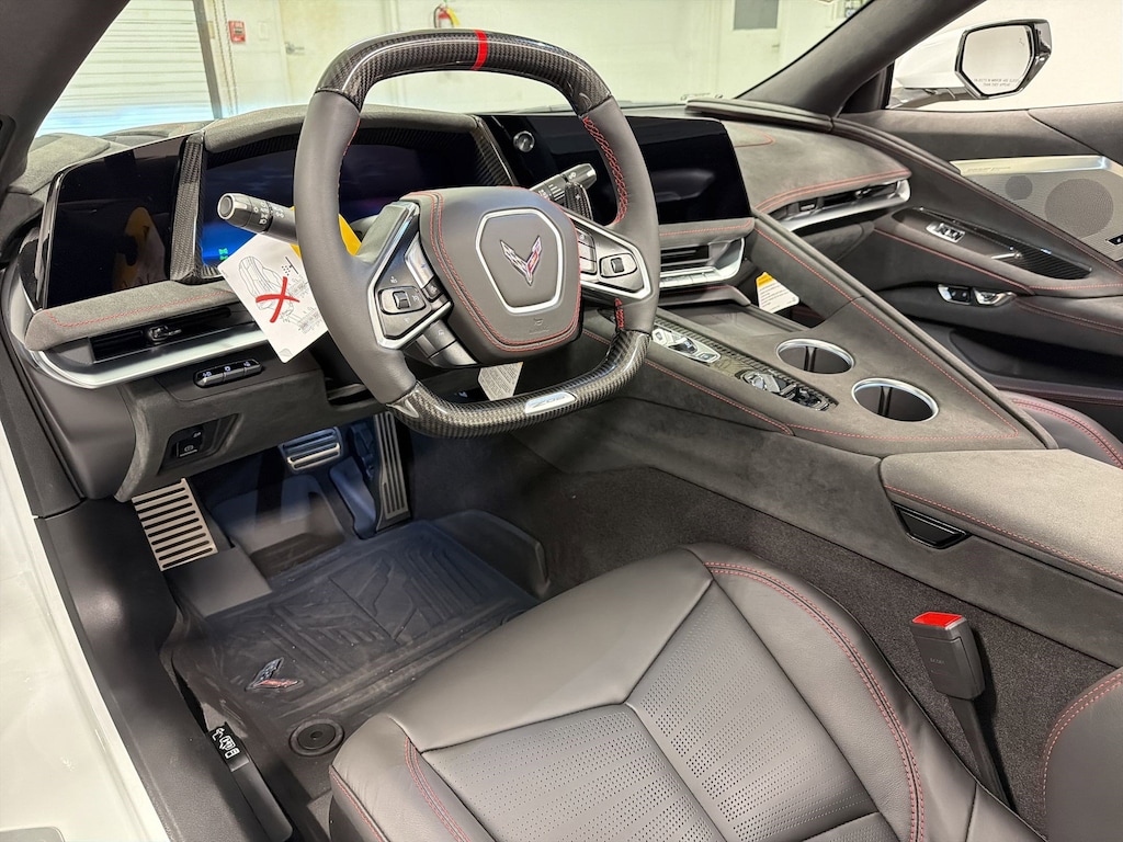 Trunk release, push button open, Transmission, 8-speed dual clutch, includes manual and auto modes, Traction control, all-speed, Tires, 275/30ZR20 front and 345/25ZR21 rear, blackwall, high performance, Theft-deterrent system, vehicle, push button start, immobilizer and audible visual alarm, Theft-deterrent system, electrical, unauthorized entry, activates the horn, Theft deterrent sensor, vehicle interior movement, Theft deterrent sensor, vehicle inclination, Suspension, performance with Magnetic Selective Ride Control, Steering, power, electric speed-sensitive, rack-and-pinion, variable ratio, Steering wheel, heated, Steering wheel, carbon fiber and leather-wrapped, Steering wheel controls, audio, voice recognition, cruise and Driver Information Center, Steering column, power tilt and telescopic, Spoiler, rear, SiriusXM with 360L Trial Subscription SiriusXM with 360L transforms your customers' ride with our most extensive and personalized radio experience on the road. (IMPORTANT: The SiriusXM trial subscription is not provided on vehicles that are ordered for Fleet Daily Rental ("FDR") use. Trial subscription is subject to the SiriusXM Customer Agreement and privacy policy, visit siriusxm.com which includes full terms and how to cancel. All fees, content, features, and availability are subject to change. Some features require GM connected vehicle services.), Side Blind Zone Alert, Seats, heated and vented driver and passenger, Seats, GT2 bucket, Seat belt color, Black ((HZN/HUF) Natural Dipped interior comes with (3N9) Natural seat belt color; (HT8) Santorini Blue interior comes with (3A9) Santorini Blue seat belt color; (HNK) Adrenaline Red Dipped comes with (3F9) Torch Red seat belt color; (HUW/HUX) Habanero interior and (EMT) Sky Cool/Medium Ash Gray interior comes with (379) Orange seat belt color.).