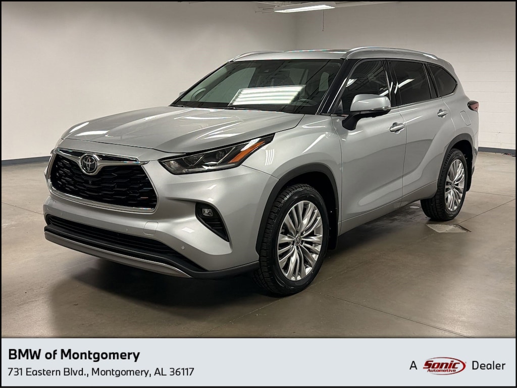 Panoramic Roof! This 2024 Toyota Highlander Platinum comes complete with Turbocharged, Brake Assist, Headlights-Auto-Leveling, Bluetooth Connection, Heated and Cooled Front Seat(s), Navigation System, Aerial View Display System, Heads-Up Display, Evasion Assist, Rear Parking Aid, and much more. This is a One Owner Clean Carfax vehicle. Our staff of certified technicians inspect and re-conditioned every vehicle. No hassles. No worries. Peace of mind. Please chat, email, or call to verify any information in question and to schedule your VIP test drive. Experience the Sonic Price difference for yourself at the BMW Montgomery. We believe a transparent purchase process is the only way to buy a previously owned car, truck, or SUV. That along with market based pricing makes BMW of Montgomery the right place to shop for your next car. We are located at 731 Eastern Blvd, Montgomery, AL 36117. Our showroom is open Monday through Friday from 8:30 -- 7:00pm, and Saturdays until 6pm.
